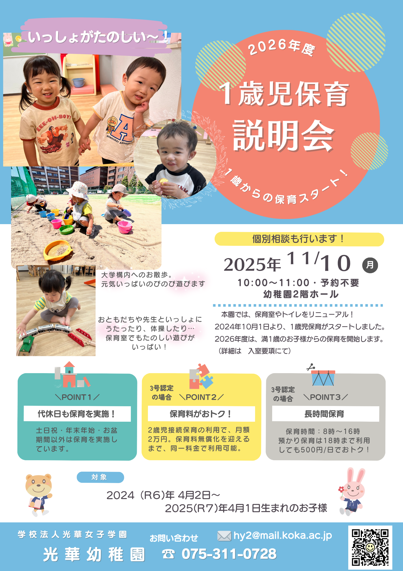 2025(令和7)年5月からは1歳半から受け入れを開始します。一人ひとりに寄り添い、安心・安全な環境で保育を行っていきます。